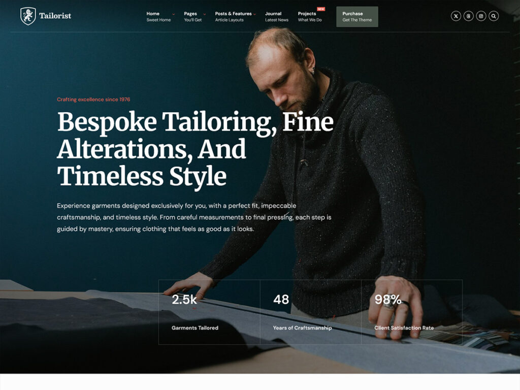 A timeless WordPress theme built for tailors, boutiques, and ateliers