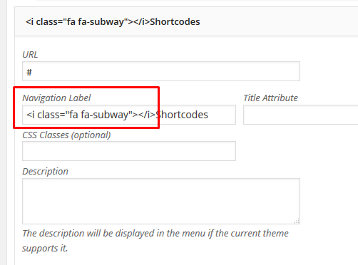 Enter full icon code - 'fa' class is required.