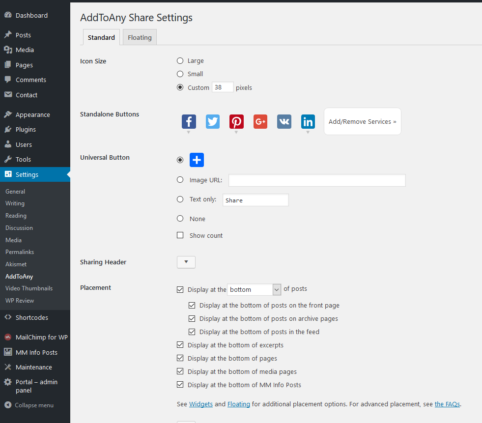 Plugin can be set in Settings > AddToAny: