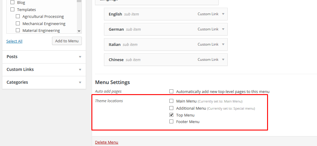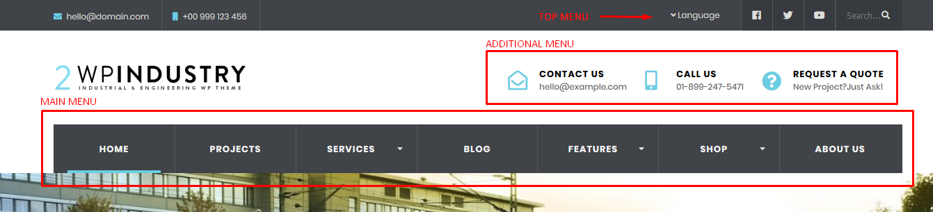 You have learned (in previous 'menu tutorial') that theme comes with 'locations' where you can display your custom menus. In WP Industry are available following 'locations'