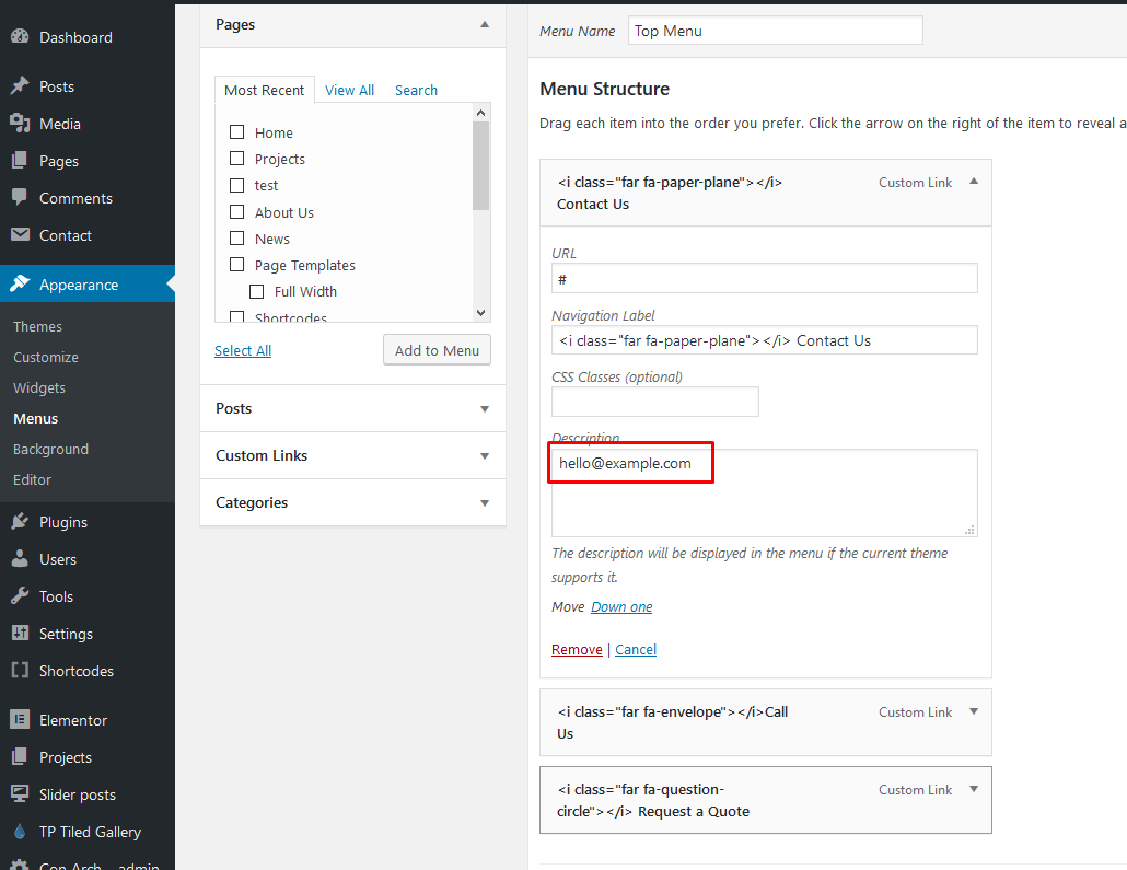 3. Toggle any menu item and type some text word into 'Description' field (see previous steps if the field is not visible/enabled):